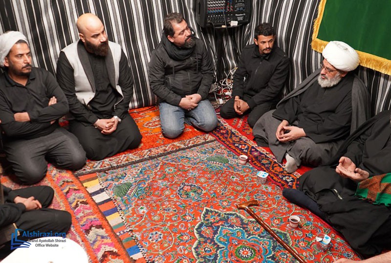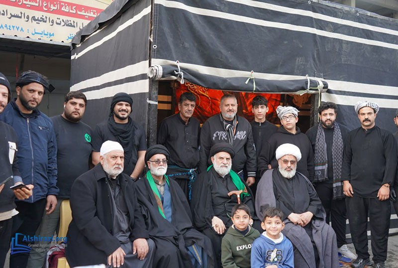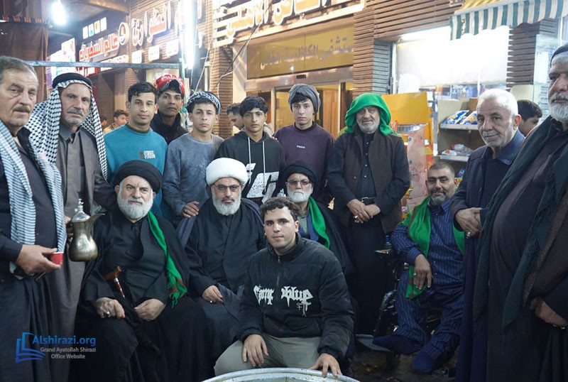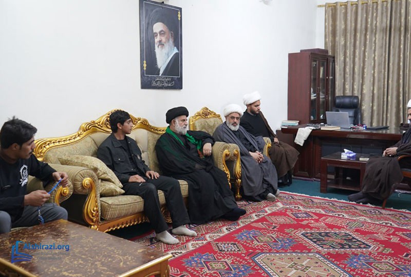 During this visit, the delegation conveyed the greetings, prayers, and guidance of Grand Ayatollah Shirazi, may Allah prolong his life, to the attendants and organizers of the Husseini groups and processions stationed in Holy Kadhimayn district.