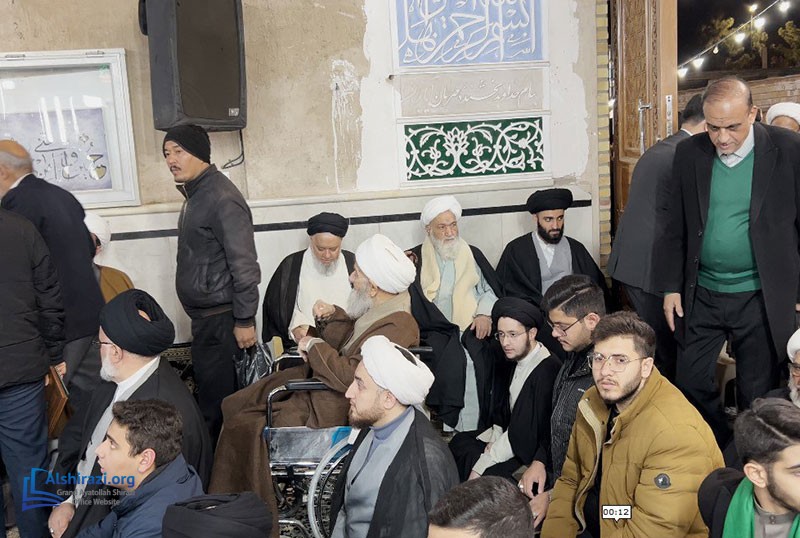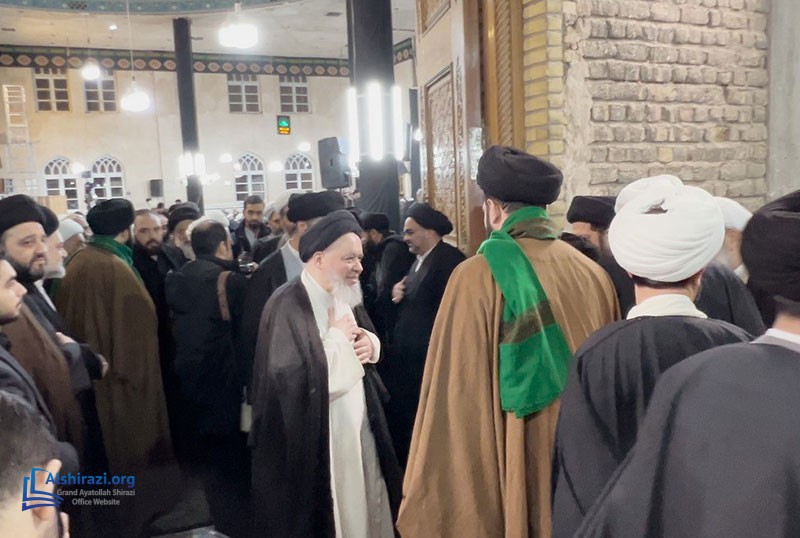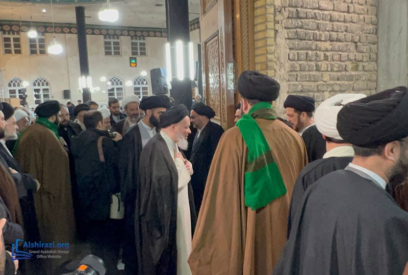 Sayyid Hussein Shirazi, may Allah protect him, the son of the esteemed religious authority Grand Ayatollah Sayyid Sadiq Husseini Shirazi, may Allah prolong his life, participated in the memorial ceremony for the late Grand Ayatollah Sayyid Hadi Mujtahidi Sistani, may Allah have mercy on him, the brother of the esteemed religious authority Grand Ayatollah Sayyid Ali Husseini Sistani, May Allah Prolong His Life, in the holy city of Qom.
