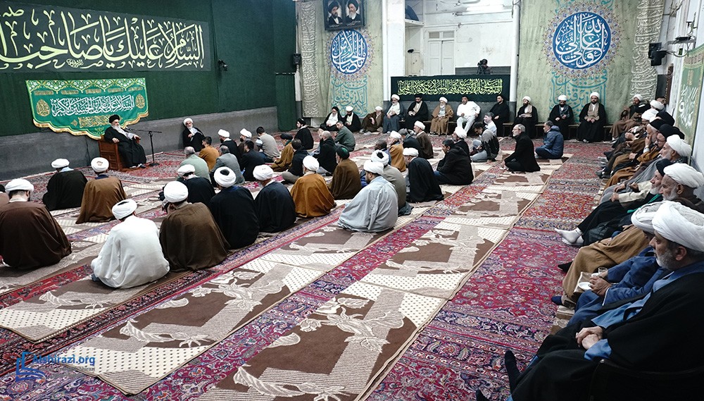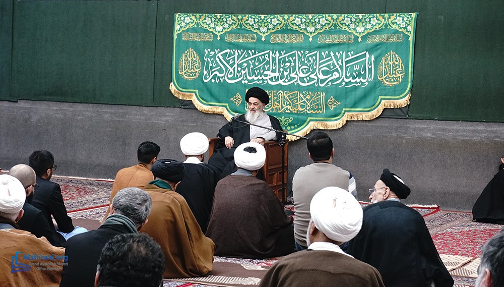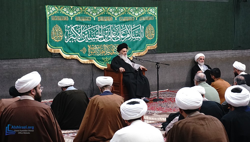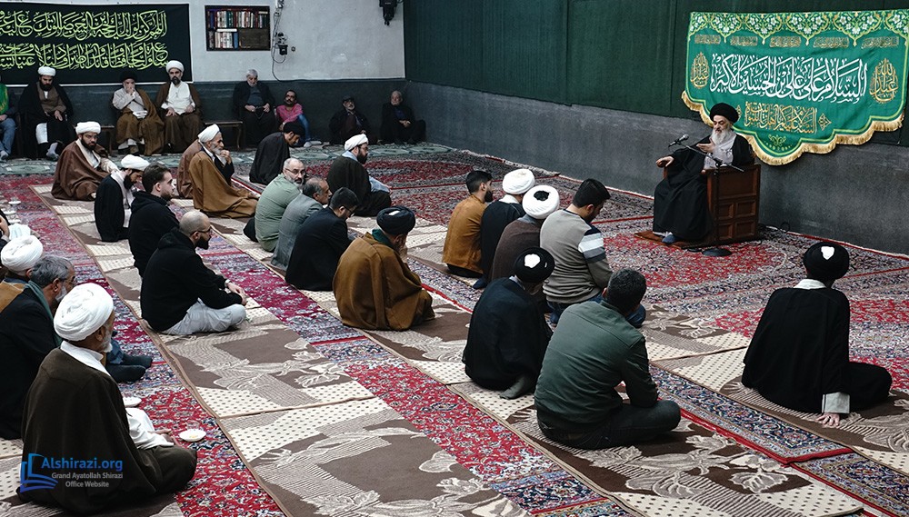 On Monday, February 2, 2026 (13 Shaban 1447 A.H.), the esteemed Religious Authority, Grand Ayatollah Sayyid Sadiq Husseini Shirazi, may Allah prolong his life, held another scholarly session at his residence in the Holy City of Qom, Iran, with the participation of dozens of scholars, religious figures, and seminary students.