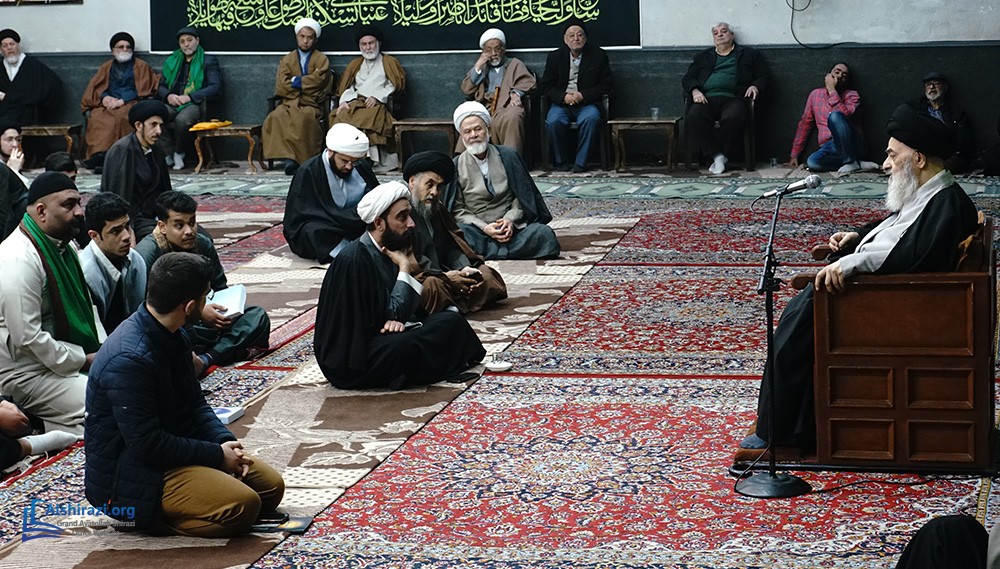 On Monday, February 9, 2026 (20 Shaban 1447 A.H.), the esteemed Religious Authority, Grand Ayatollah Sayyid Sadiq Husseini Shirazi, may Allah prolong his life, held another scholarly session at his residence in the Holy City of Qom, Iran, with the participation of dozens of scholars, religious figures, and seminary students.