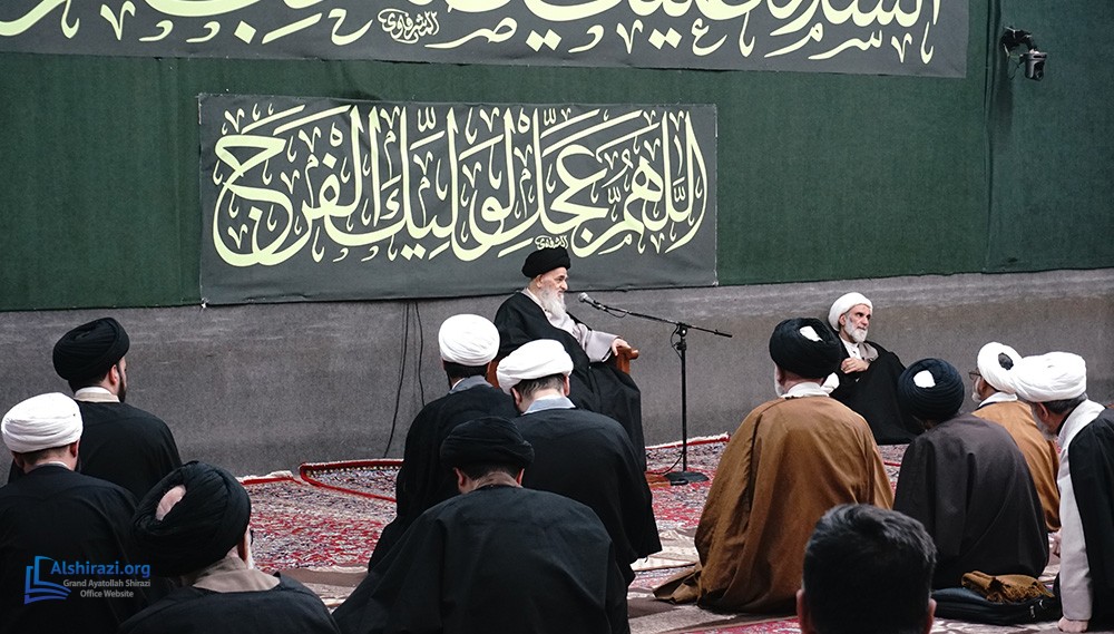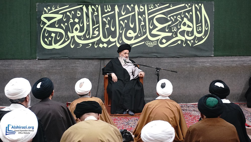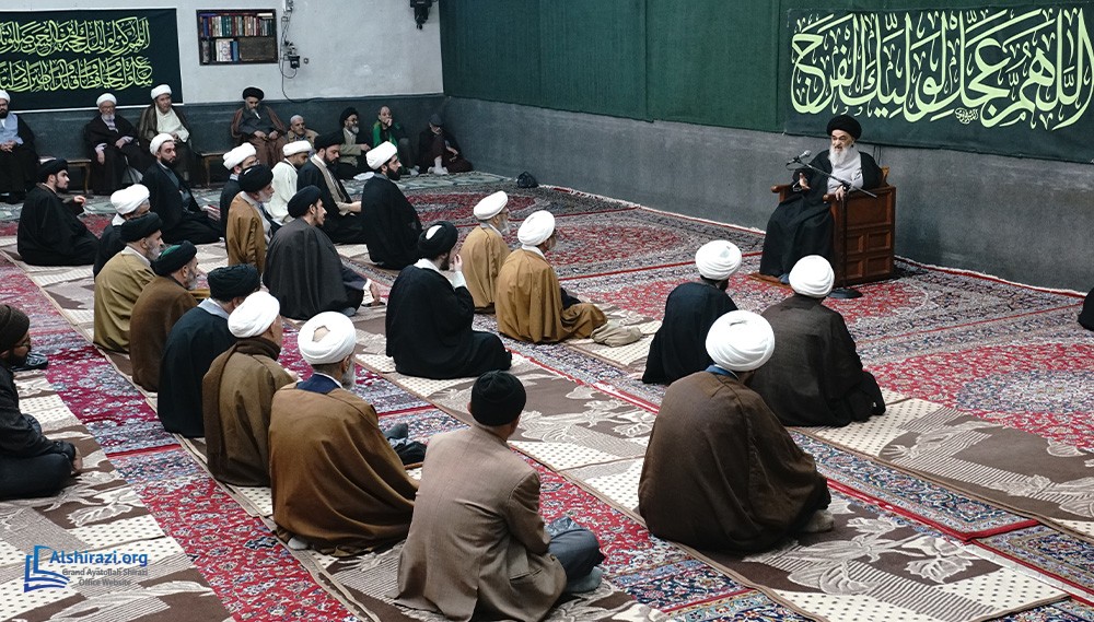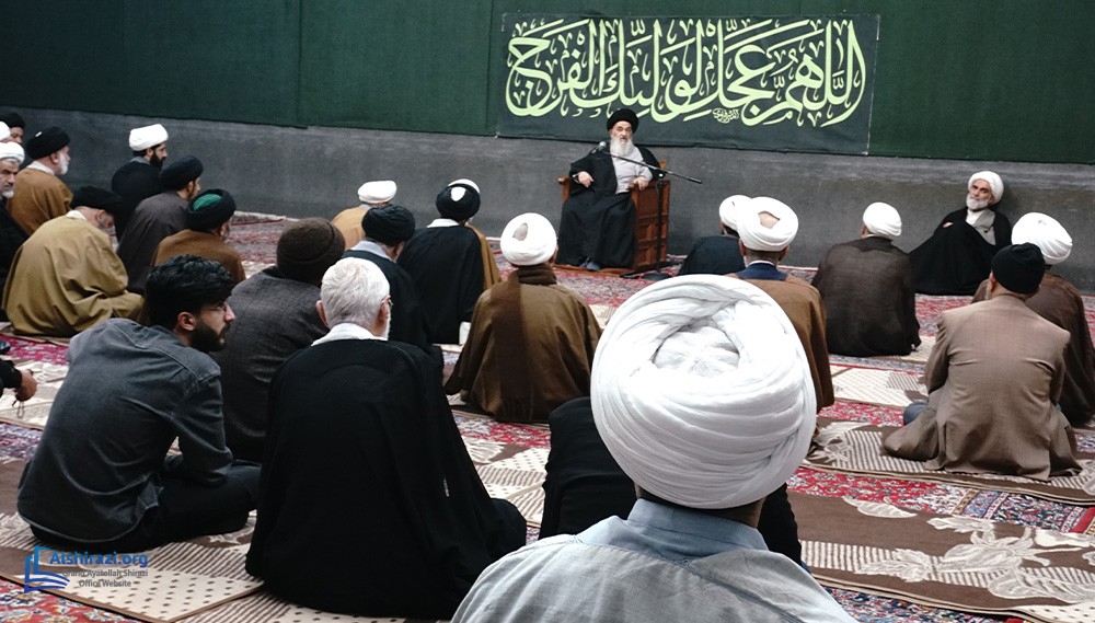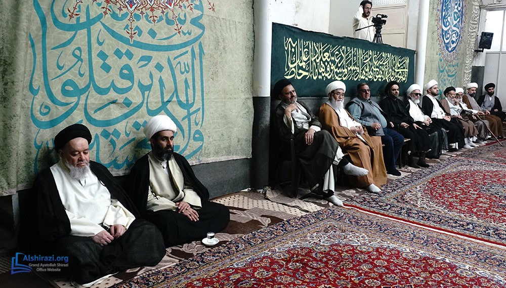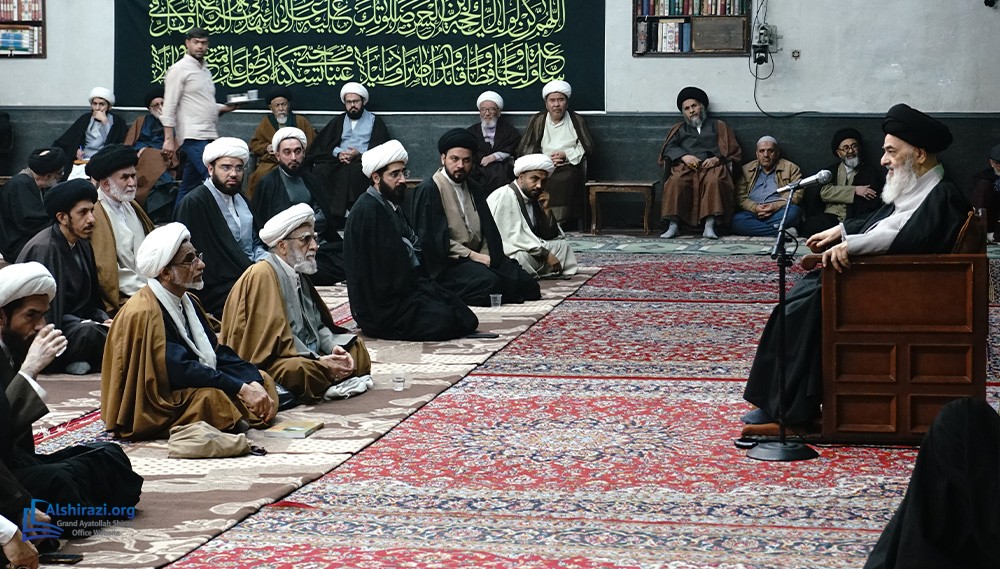 On Tuesday, February 10, 2026 (21 Shaban 1447 A.H.), the esteemed Religious Authority, Grand Ayatollah Sayyid Sadiq Husseini Shirazi, may Allah prolong his life, held another scholarly session at his residence in the Holy City of Qom, Iran, with the participation of dozens of scholars, religious figures, and seminary students.