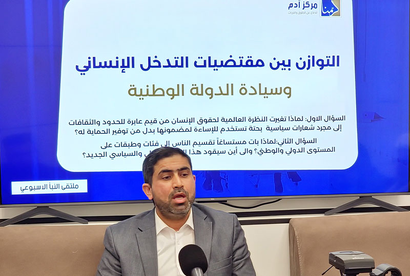 مرکز حقوق بشری آدم، از مراکز مرتبط با مرجعیت در کربلای معلی، نشست گفتگویی را در مؤسسه فرهنگی ـ رسانه ای النبأ، با عنوان )توازن میان مقتضیات مداخله انسانی و حاکمیت دولت ها( برگزار کرد.