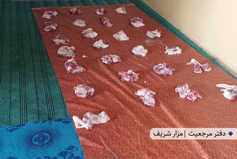 یکی از این اقدامات، توزیع گوشت قربانی به مناسبت ولادت حضرت امام عصر بود که در شهر مزار شریف با همکاری مؤسسه فرهنگی-خیریه المصطفی صلی الله علیه وآله صورت گرفت. در این برنامه، شش رأس گوسفند ذبح و گوشت آن بین نیازمندان توزیع شد.