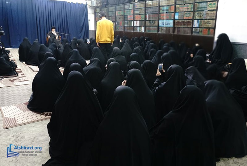 A group of female students from Al-Sayyidah Zahra Seminary (P.B.U.H.), visited the esteemed Religious Authority, Grand Ayatollah Sayyid Sadiq Husseini Shirazi, may Allah prolong his life, in the holy city of Qom.