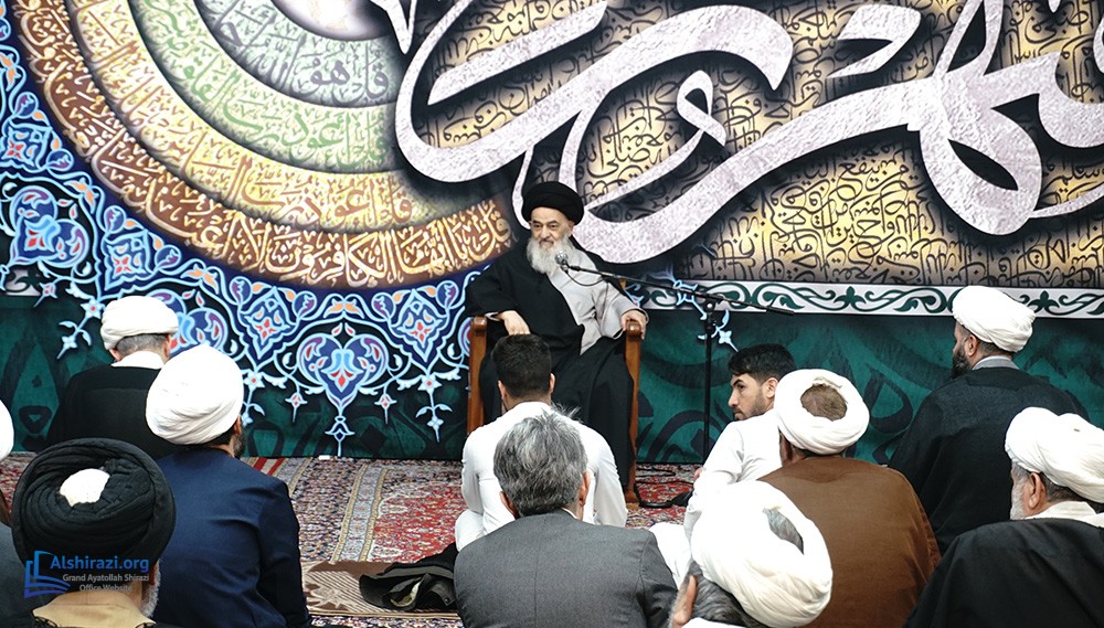 On the night of Saturday, the 3rd of Ramadan, 1447 A.H. (21st of February, 2026), another scholarly session of the esteemed Religious Authority, Grand Ayatollah Sayyid Sadiq Husseini Shirazi, may Allah prolong his life, took place at his residence in the holy city of Qom. This session was attended by scholars, religious figures, and seminary students.