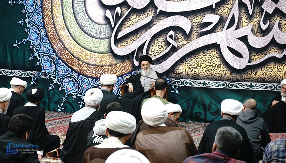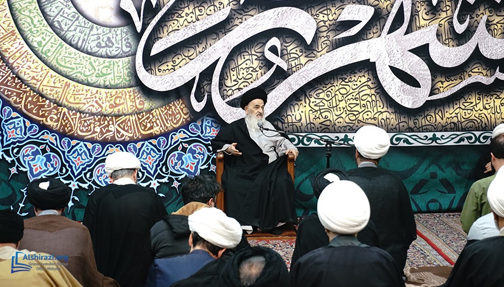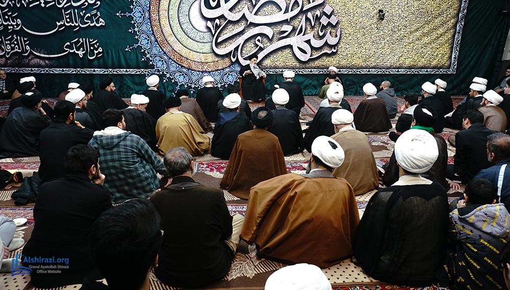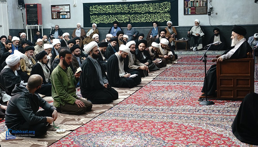 On the night of Sunday, the 4th of Ramadan, 1447 A.H. (22nd of February, 2026), another scholarly session of the esteemed Religious Authority, Grand Ayatollah Sayyid Sadiq Husseini Shirazi, may Allah prolong his life, took place at his residence in the holy city of Qom. This session was attended by scholars, religious figures, and seminary students.