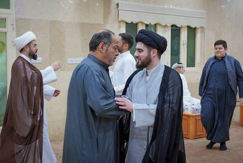 میهمانان طی این اقدام با حجت الاسلام والمسلمین سید احمد شیرازی زیدعزّه، فرزند مرجع عالیقدر آیت الله العظمی سید صادق حسینی شیرازی دام ظله، دیدار کردند.