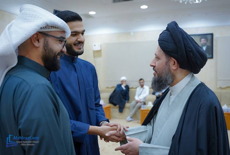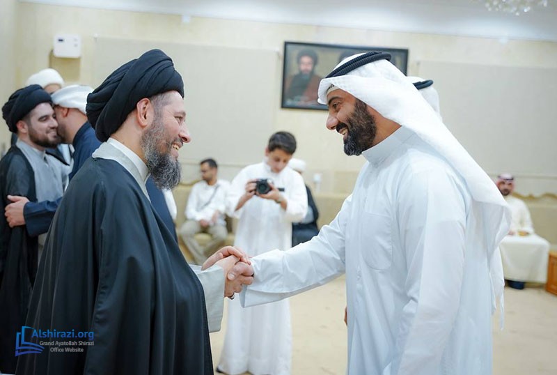 Sayyid Ahmad Shirazi is the son of Grand Ayatollah Sayyid Sadiq Hosseini Shirazi, may Allah prolong his life. On this occasion, various religious, cultural, social, and political personalities, along with the general body of believers from Kuwait, attended the Diwaniyah of Grand Ayatollah Shirazi in Kuwait and met with him.