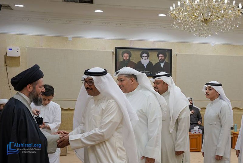 On the fourth night of the blessed month of Ramadan 1447 AH, a group of religious, cultural, and social scholars, along with believers from Kuwait, gathered at the Diwaniyah of Grand Ayatollah Sayyid Sadiq Husseini Shirazi, may Allah prolong his life, on the occasion of the arrival of this blessed month.