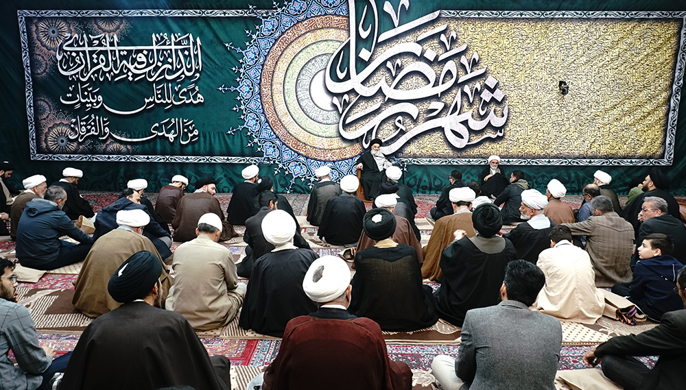 أُقيمت المطارحة العلمية الرمضانية للمرجع الديني سماحة آية الله العظمى السيّد صادق الحسيني الشيرازي دام ظله، مع العلماء والفضلاء وشخصيات دينية وطلبة العلوم الدينية والمؤمنين، في بيته المكرّم بمدينة قم المقدّسة، مساء يوم الأربعاء 7 رمضان العظیم 1447 للهجرة (2026/02/25). وقد شهدت المطارحة حضور العشرات من العلماء والشخصيات الدينية وطلبة الحوزات العلمية.