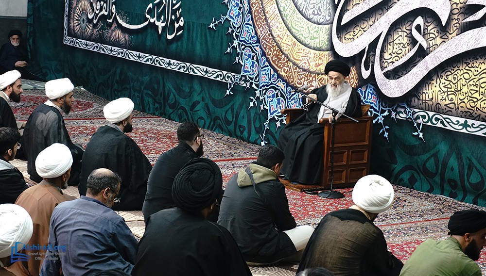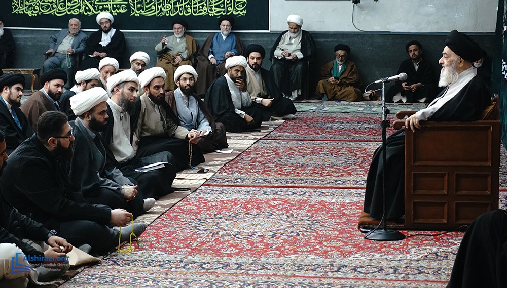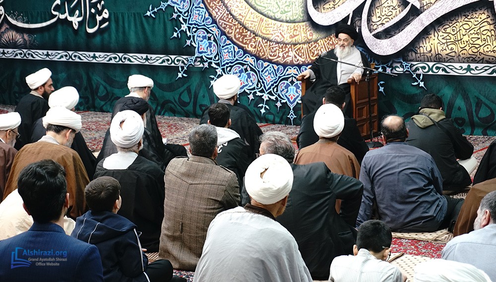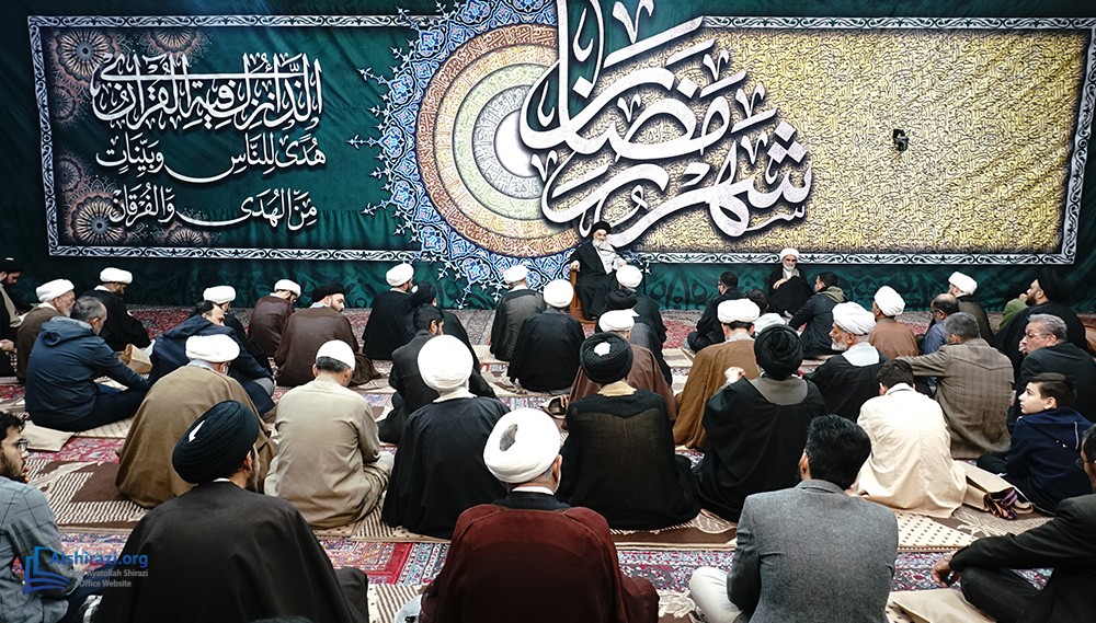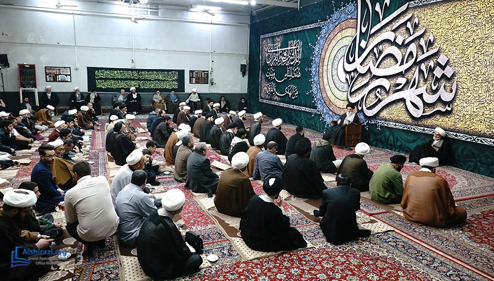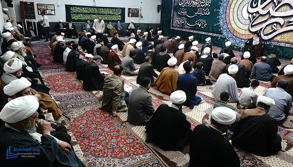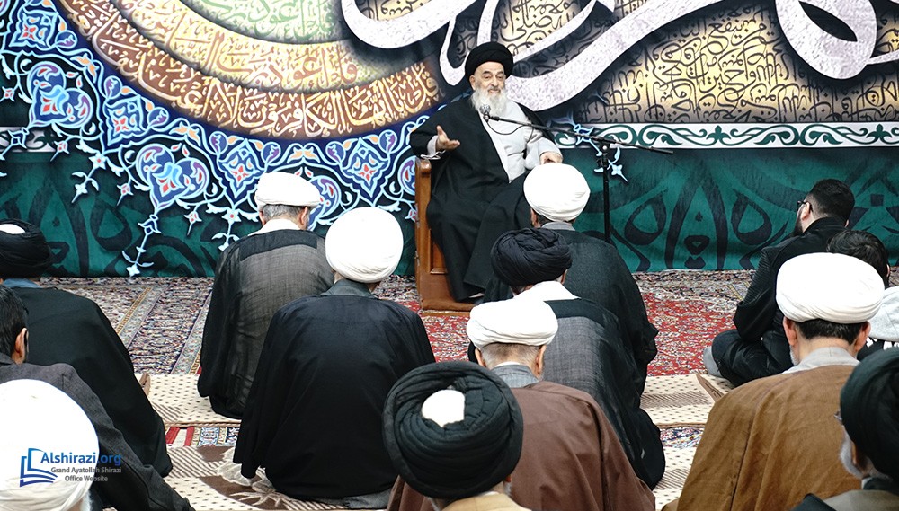 On the night of Wednesday, the 7th of Ramadan, 1447 A.H. (25th of February, 2026), another scholarly session of the esteemed Religious Authority, Grand Ayatollah Sayyid Sadiq Husseini Shirazi, may Allah prolong his life, took place at his residence in the holy city of Qom. This session was attended by scholars, religious figures, and seminary students.