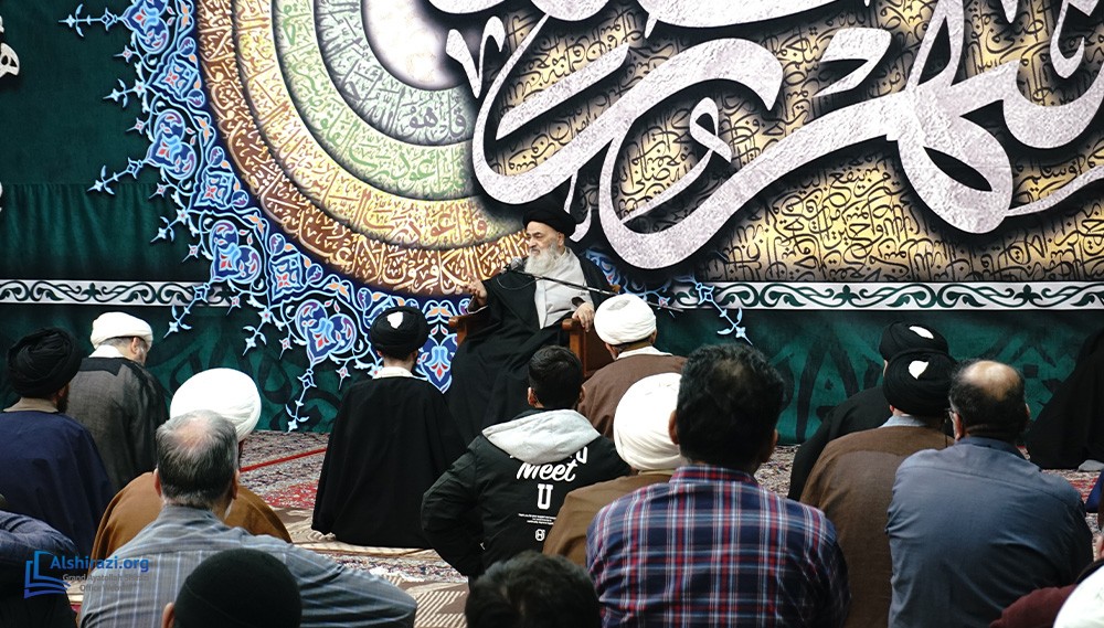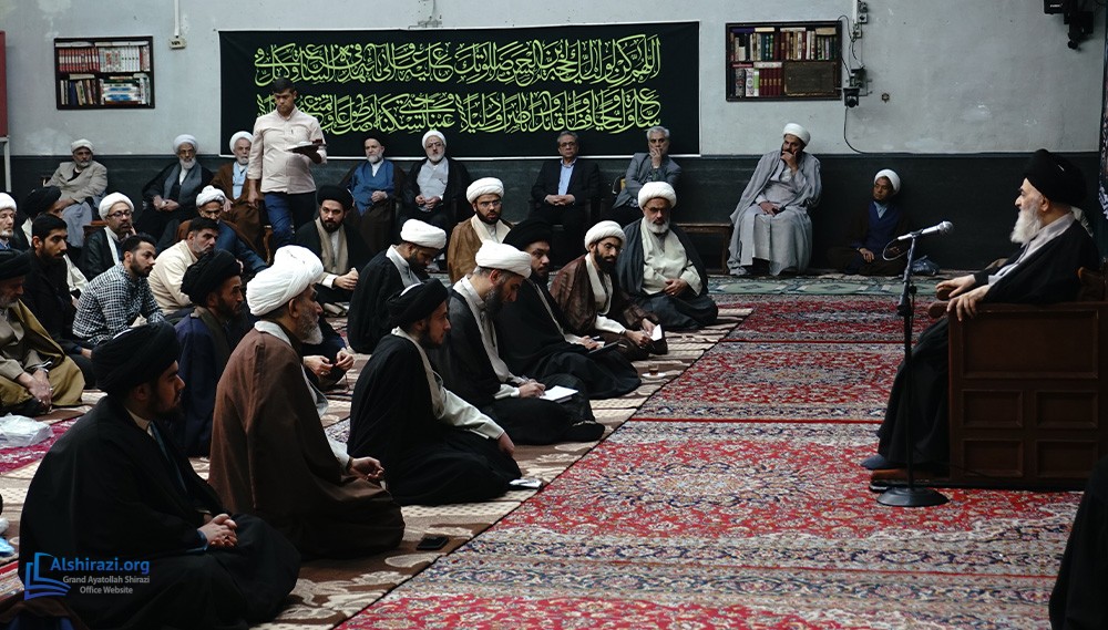 On the night of Thursday, the 8th of Ramadan, 1447 A.H. (26th of February, 2026), another scholarly session of the esteemed Religious Authority, Grand Ayatollah Sayyid Sadiq Husseini Shirazi, may Allah prolong his life, took place at his residence in the holy city of Qom. This session was attended by scholars, religious figures, and seminary students.