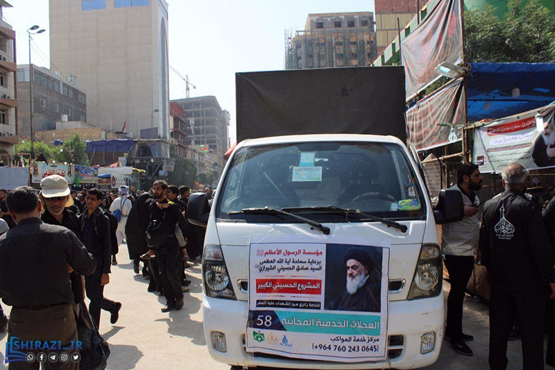 با توجه به ازدحام بالای جمعیت در کربلای معلی و بسته بودن راه ها برای عبور و مرور وسایل نقلیه، این مؤسسه با استفاده از وسایل نقلیه مناسب به جابجایی زائران و وسایل مورد نیاز مواکب می پردازد.