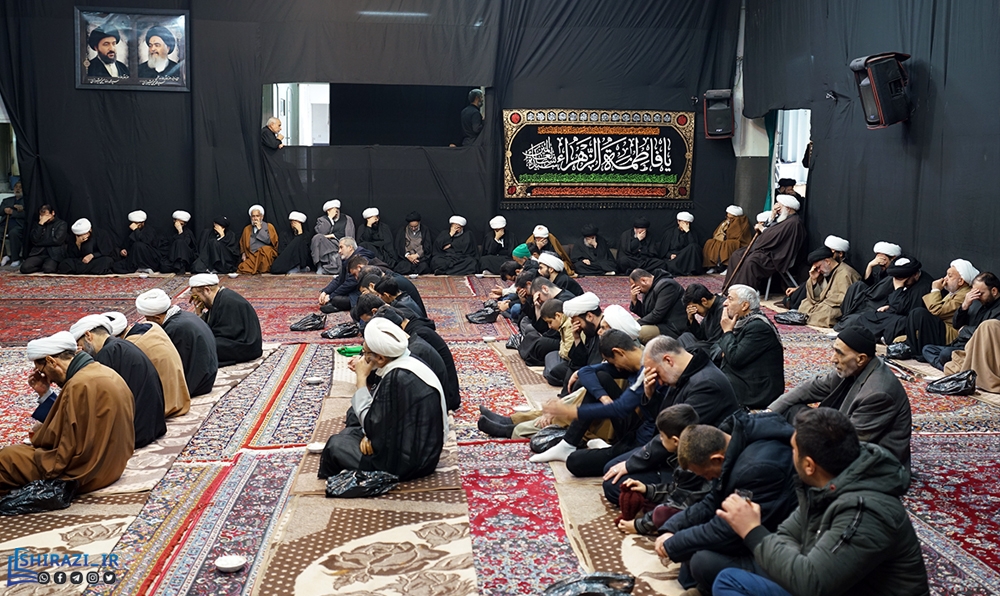 عموم مؤمنان و عالمان دینی همراه با حضرت آیت الله العظمی شیرازی دام ظله برای دومین روز به مناسبت ایام شهادت حضرت زهرا سلام الله علیها به اقامه عزاداری پرداختند.