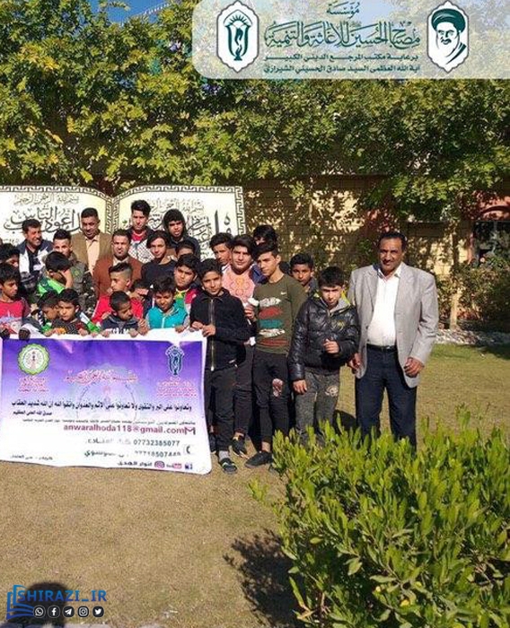 مؤسسه فرهنگی ـ نیکوکاری مصباح الحسین علیه السلام، وابسته به دفتر مرجع عالیقدر آیت الله العظمی سید صادق حسینی شیرازی دام ظله در کربلای معلی برنامه ای تفریحی ـ فرهنگی برای جمعی از کودکان یتیم این شهر برگزار کرد.