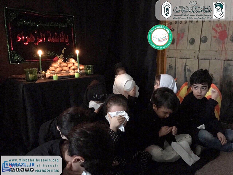نوگلان فاطمی مهد کودک روضة الحسناء، از مراکز وابسته به مؤسسه فرهنگی و نیکوکاری مصباح الحسین علیه السلام در کربلای معلی (وابسته به دفتر مرجع عالیقدر آیت الله العظمی سید صادق حسینی شیرازی دام ظله) سرمشق ولایت و محبت به خاندان پاک رسول خدا صلی الله علیه وآله انجام دادند.