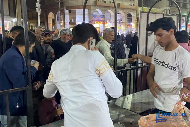 بالصدد المذكور، وفي يوم ذكرى مولد مولانا الإمام زين العابدين صلوات الله عليه، في الخامس من شهر شعبان المعظّم 1443 للهجرة (9/3/2022م) وعبر محطّتها التي نصبتها في شارع باب قبلة الإمام الحسين صلوات الله عليه، قامت المؤسسة باستضافة الزائرين الحسينيين الكرام وأهالي المدينة الكريمة، بأنواع المأكولات والعصائر والحلويات والفاكهة، وغيرها.