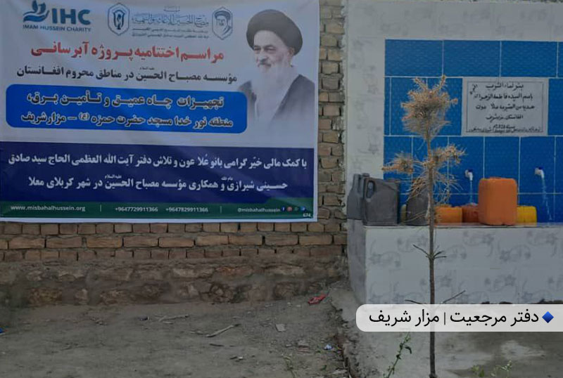 همچنین، همزمان با ایام میلاد، پنجاهمین چاه آب آشامیدنی توسط دفتر مرجعیت و با همکاری مؤسسه فرهنگی-نیکوکاری مصباحالحسین علیهالسلام در شهر مزار شریف افتتاح شد. این پروژه که در روز یکشنبه ۲۱ ربیعالاول ۱۴۴۷ قمری به بهرهبرداری رسید، صدها خانواده نیازمند را از آب آشامیدنی سالم بهرهمند ساخت.
