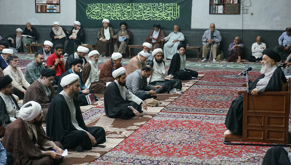 أُقيمت الجلسة العلمية اليومية للمرجع الديني سماحة آية الله العظمى السيّد صادق الحسيني الشيرازي دام ظله، مع العلماء والفضلاء وشخصيات دينية وطلبة العلوم الدينية والمؤمنين، في بيته المكرّم بمدينة قم المقدّسة، صباح اليوم الأربعاء 1 ربيع الثاني 1447 للهجرة (2025/9/24م). وقد شهدت الجلسة حضور العشرات من العلماء والشخصيات الدينية وطلبة الحوزات العلمية.