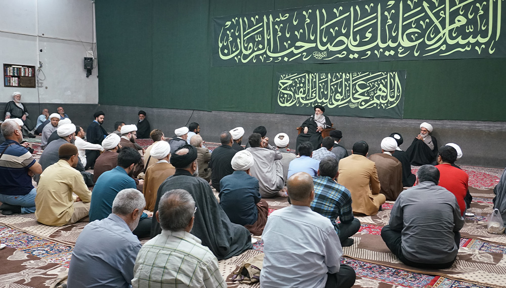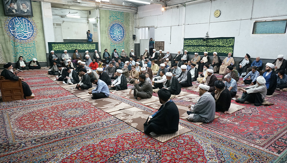 أُقيمت الجلسة العلمية اليومية للمرجع الديني سماحة آية الله العظمى السيّد صادق الحسيني الشيرازي دام ظله، مع العلماء والفضلاء وشخصيات دينية وطلبة العلوم الدينية والمؤمنين، في بيته المكرّم بمدينة قم المقدّسة، صباح اليوم الجمعة 3 ربيع الثاني 1447 للهجرة (2025/9/26م). وقد شهدت الجلسة حضور العشرات من العلماء والشخصيات الدينية وطلبة الحوزات العلمية.