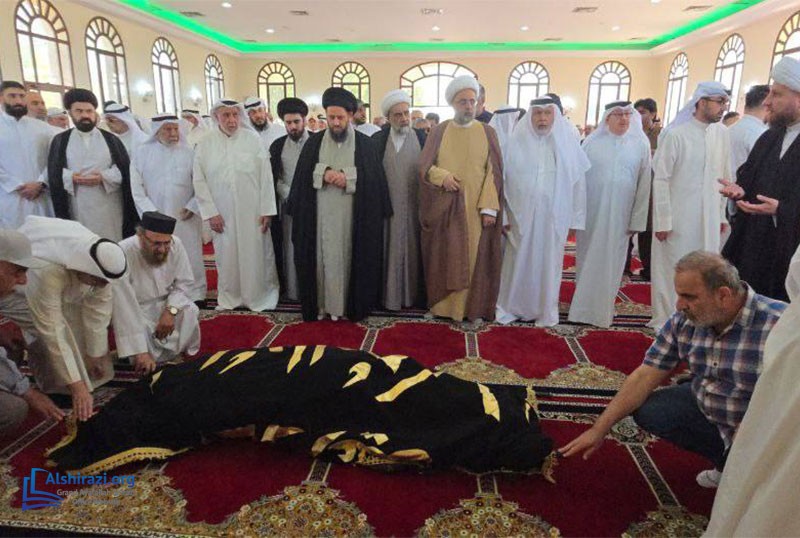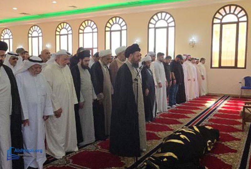 The funeral prayer for the late mother of Mr. Ismail Jannati, a prominent social figure in Kuwait, was led by Sayyid Ahmad Shirazi, may Allah grant him honor, the son of Grand Religious Authority Ayatollah Sayyid Sadiq Husayni Shirazi, may Allah prolong his life.