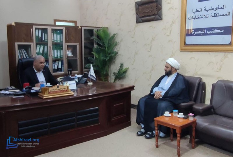 Sheikh Sadiq Albasri, director of the Ahlul Bayt Institute, visited the Basra Traffic Department and the High Electoral Commission, where he discussed joint cooperation to better serve the people of Basra.