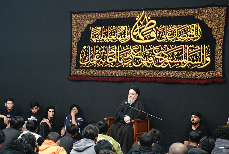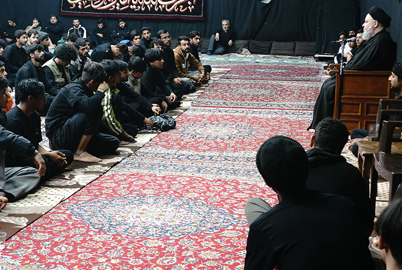 شارك أعضاء الوفدَيْن في مراسم العزاء المقامة في بيت المرجعية بمناسبة ذكرى استشهاد السيّدة فاطمة الزهراء سلام الله عليها، ثم أدّوا صلاة الفريضة جماعة، واستمعوا بعد ذلك إلى كلمة توجيهية ألقاها حجّة الإسلام والمسلمين السيّد حسين الشيرازي زيد عزّه.