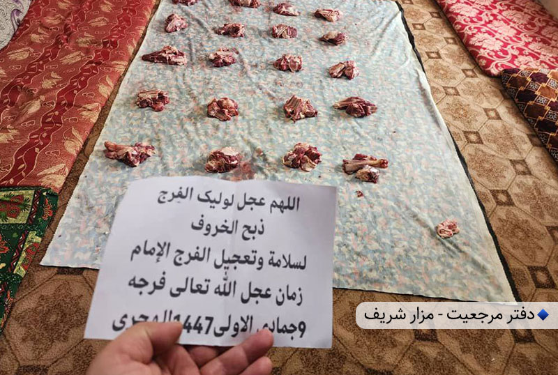 در حوزه فعالیتهای اجتماعی و امدادی، دفتر مرجعیت در شهر مزار شریف طی دو نوبت در روزهای ۷ و ۹ جمادیالاولی، با همکاری مؤسسه فرهنگی خیریه المصطفی صلیاللهعلیهوآله اقدام به ذبح پنج رأس گوسفند و توزیع گوشت آن میان خانوادههای نیازمند نمود. این طرح در راستای توصیههای مرجعیت دینی مبنی بر رسیدگی به اقشار آسیبپذیر جامعه اجرا گردید.