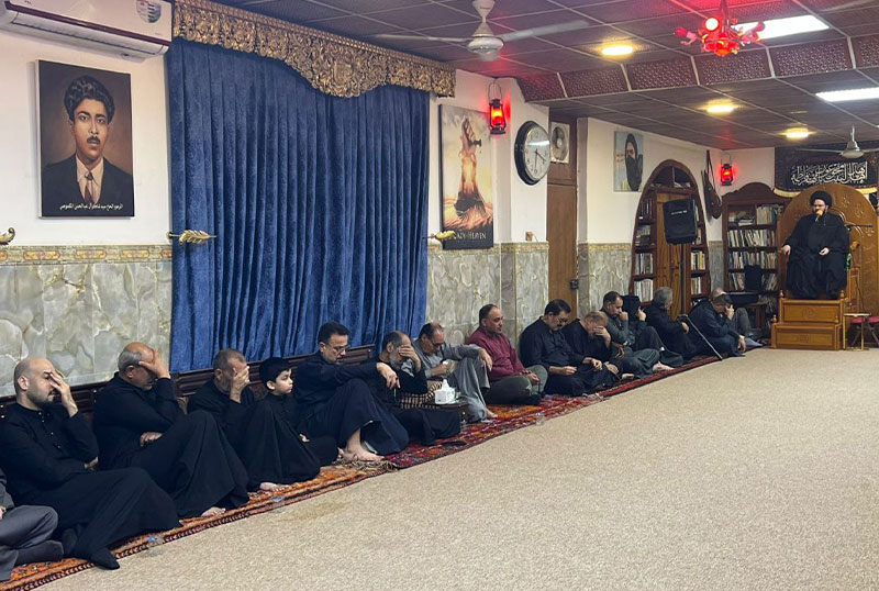 حجت الاسلام شيخ نزار الحسن، مدير دفتر مرجع عاليقدر آيت الله العظمی سيد صادق حسيني شيرازی دام ظله در شهر بصره، در مراسم عزاداری حسينيه سادات مکاصيص حضور يافت.