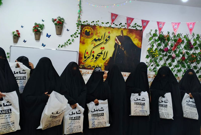 در جریان این مراسم، ده ها عدد چادر در میان جمعی از دختران و بانوان توزیع شد؛ اقدامی که در راستای ترویج عفاف، حجاب و الگوگیری از سیره اهل بیت علیهم السلام انجام گرفت.