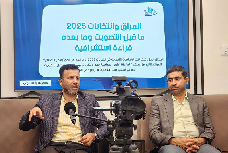 در این برنامه، دکتر حسین السرحان، پژوهشگر مرکز الفرات، مقاله ای با عنوان «عراق و انتخابات 2025؛ پیش از رأی گیری و پس از آن» ارائه کرد. وی در این مقاله بر اهمیت بررسی متغیرهای پیش و پس از انتخابات تأکید کرد و اظهار داشت که تحلیل این متغیرها می تواند در شناخت ماهیت نظام سیاسی و شکل گیری دولت آینده عراق پس از برگزاری انتخابات نقش اساسی ایفا کند.