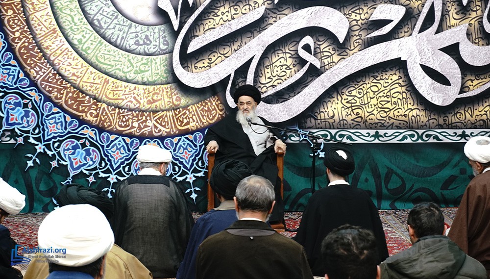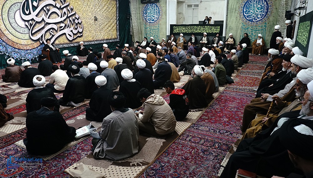 On the night of Thursday, the 8th of Ramadan, 1447 A.H. (26th of February, 2026), another scholarly session of the esteemed Religious Authority, Grand Ayatollah Sayyid Sadiq Husseini Shirazi, may Allah prolong his life, took place at his residence in the holy city of Qom. This session was attended by scholars, religious figures, and seminary students.